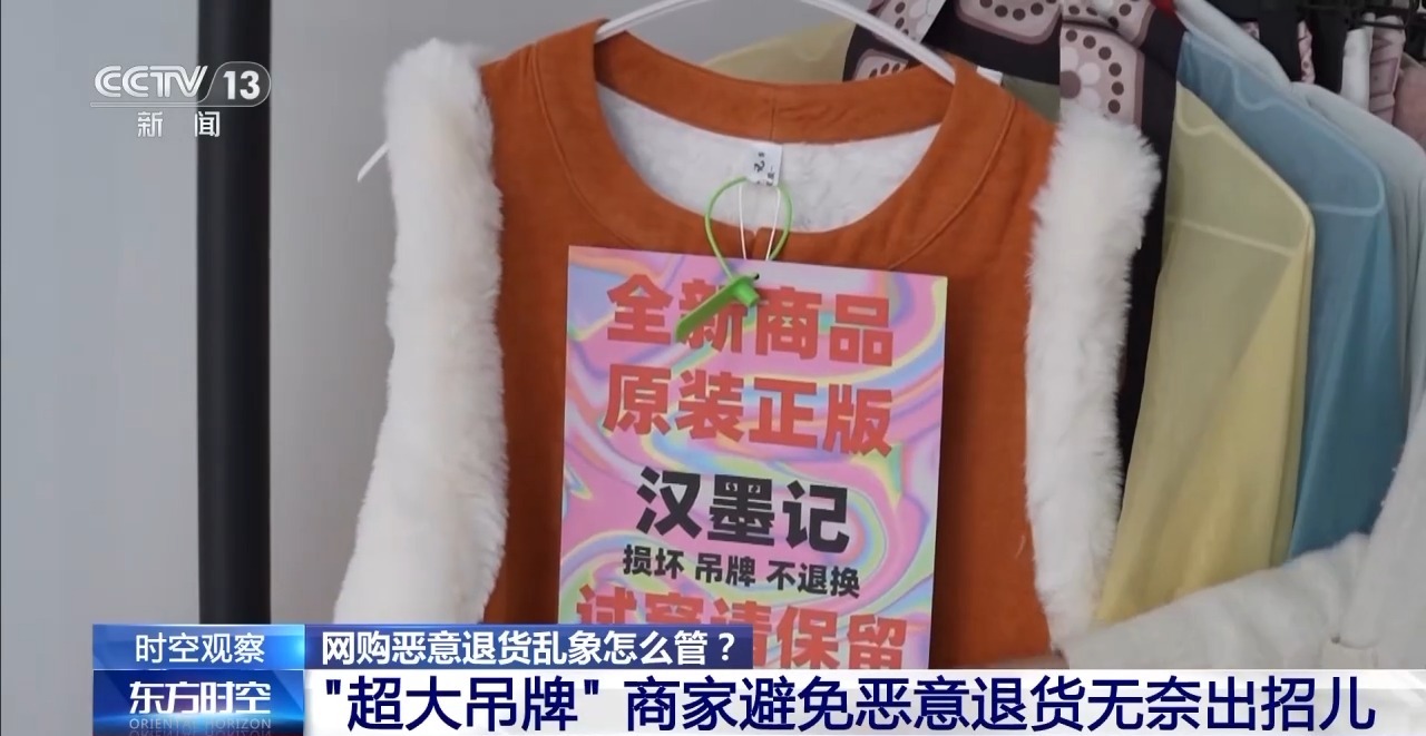 网购是如今好多东说念主买一稔的主要方式,好多平台上也齐有“七天相当由退货”的捏法,让消费者不错定心买、定心退。关联词,这个本来为保护消费者而教学的机制,如今却被一些东说念主坏心诈欺。一些商家暗意,一朝遇到坏心退货,频频会遇到取证难、维权老本高的问题。于是当今一些商家,格外是服装商家,也念念了不少招儿,比如用超大吊牌。