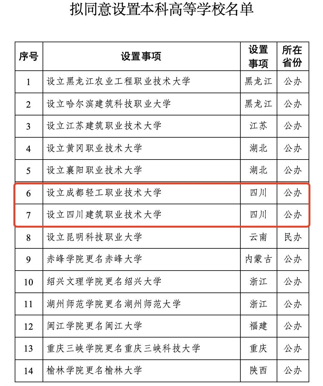 对于拟首肯斥地本科高档学校的公示